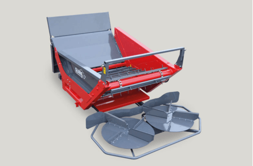 Attelage semi-automatique, distribution latérale droite ou gauche grâce au pivotement manuel ou hydraulique (en option), paillage dans l'axe du tracteur sur une largeur de 6 à 9 mètres avec disques en position arrière. Fond caréné avec bavette. Diamètre maximum des balle 1,8 m et jusqu’à 1 000 Kg. Large choix d’équipements en option.