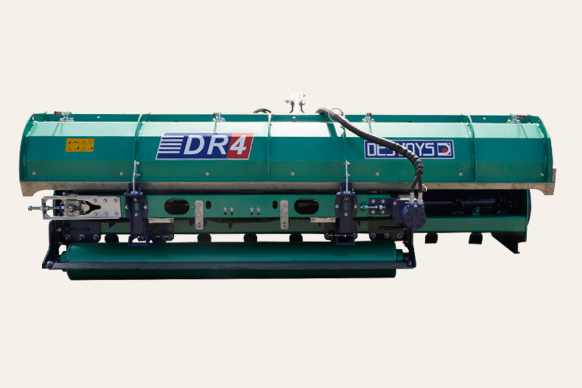 La gamme de broyeurs avec un dispositif de tapis d’andainage qui s’adapte sur broyeurs DR4, DRH CULTURE et DRH CULTURE COMBINE. Broient et rassemblent ces andains déposés à droite ou recentrés sur la largeur de travail pour rassembler de grosses étendues de matières de 3,20 m jusqu’à 8,40 m en fonction des modèles de broyeurs. Entrainement hydraulique, bandes transporteuses à taquets robustes, tapis à démontable rapide pour reprendre un emploi ordinaire. Suivi au sol rouleau arrière.