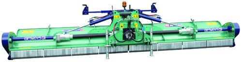 Broyeur adapté aux travaux polyvalents grâce à son rotor 6 rangées équipé de couteaux Y et de palettes de ventilation. Châssis surdimensionné et protecteurs de transmissions brevetés. Boîtier 280 cv avec roue libre incorporée. Equipé d'une paire de roues jumelées et d'une paire de roues simples (rouleau avec décrottoir Ø 245 mm en option). Existe en 2 largeurs : 4,80 et 6,40 m de largeur de travail. Repliage hydraulique. NOUVEAUTE : système de tapis d'andainage positionné dans le flux d'éjection du rotor. Entraînement hydraulique. Totalement démontable pour retrouver une utilisation conventionnelle. Permet d'effectuer un andain à l'extrémité du broyeur afin de récolter la végétation pour alimenter un méthaniseur. S'adapte sur les broyeurs déjà en service.
