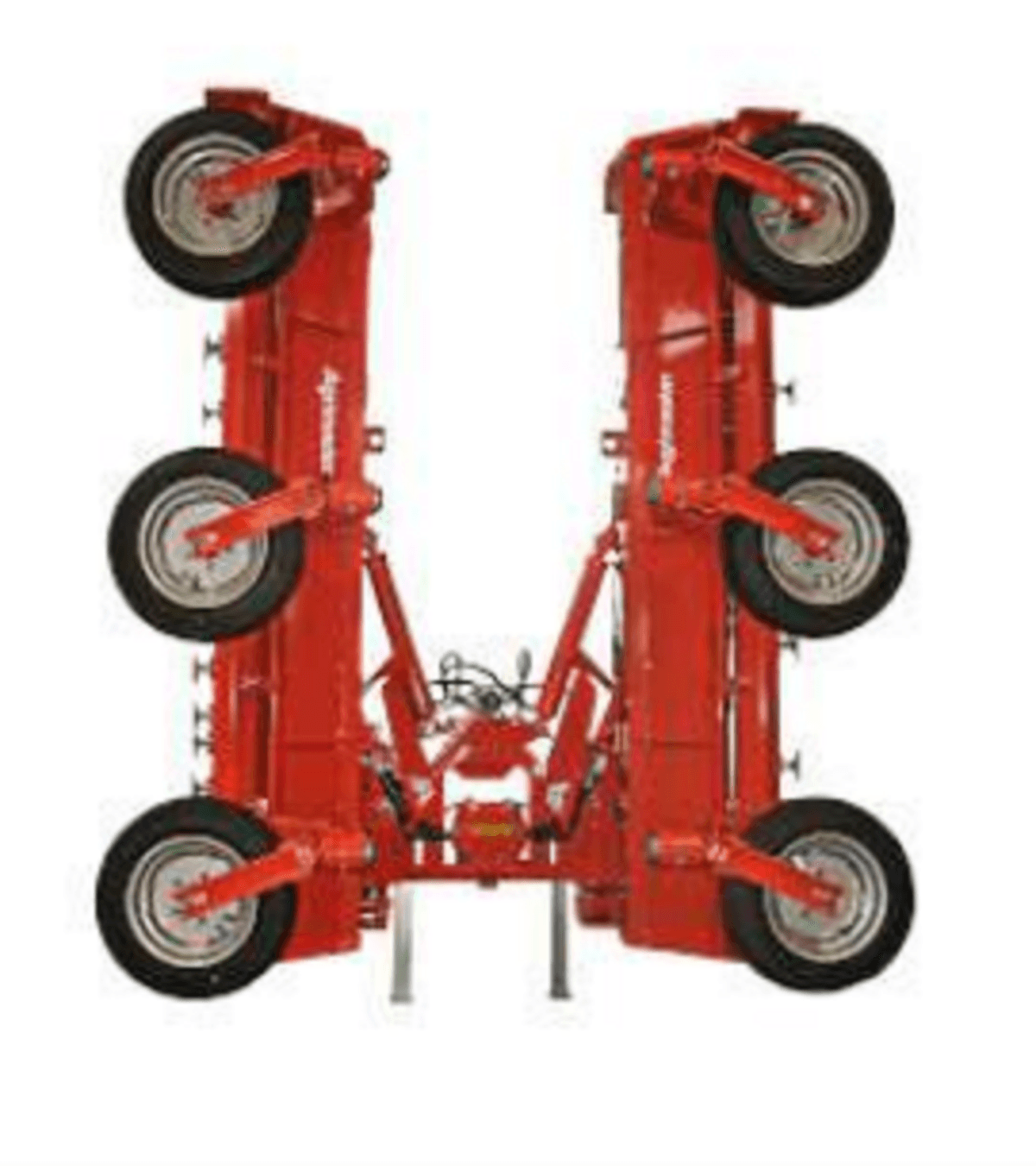 Les broyeurs pliants série READY sont conçus pour les grandes surfaces d’étendues d’herbes, de maïs, de paille, tabac, betteraves, coton, bois…Boitier roue libre, attelage 3 points, rouleau arrière diamètre 194, capot arrière ouvrable pour l’entretien uniquement, choix des couteaux sur les modèles READY R et RN, accumulateur hydropneumatique sur les vérins d’ouverture, crochets de sécurité pour le transport en position fermée. Largeurs de travail 4,6 à 6,40 m selon les modèles. Puissance de tracteur de 120 à 200 cv et poids de 2 250 à 3 700 Kg.