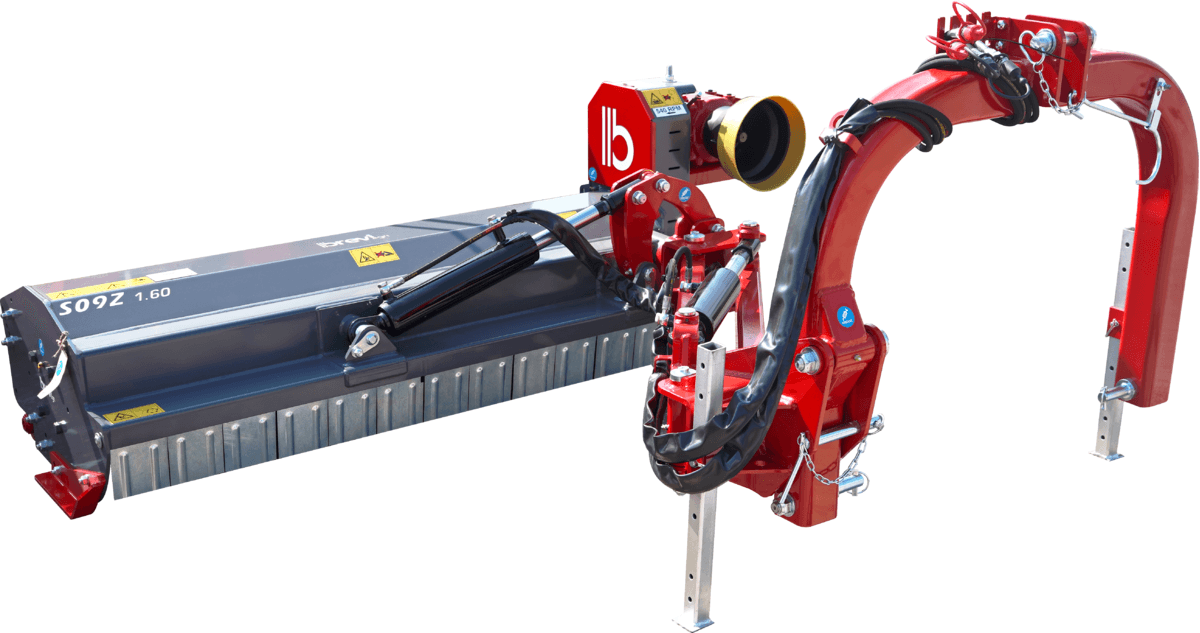 Pour tracteur de 60 à 90 cv, largeur de travail 2 m, 650 kg. Roue libre, rouleau AR, inclinaison 90° vers le haut, 65° vers le bas. Toute une gamme disponible de 1,20 à 2,50 m pour tracteurs de 25 à 120 cv.