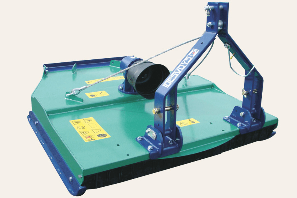 Avec transmission limiteur de couple à friction, un régime PDF de 540 tr/mm, rotor équipé de 3 lames, 2 contre couteaux, hauteur de coupe réglable de 60 à 210 mm, suivi au sol réglable : paire de patins boulonnés. Attelage catégorie 1 flottant en chapes centré ou déportable. Poids : 350 kg - 409 kg. Puissance tracteur 50-100 cv