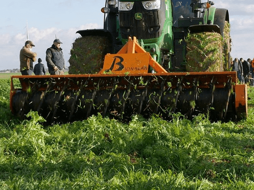 Le rouleau BIOLA est une révolution dans le domaine des rouleaux hacheur et a une largeur de 3 m à 9 m. A utiliser dans différents types de couverts des développés au moins développés sur graminés ou légumineuses. Possibilité de choisir le rendu de défibrage après le passage de l’outil grâce aux pignons interchangeable et ainsi faire valider la démultiplication entre les rouleaux pour permettre d’optimiser au maximum e couvert et choisir le degré de défibrage, réaliser un broyage afin de détruire intégralement le couvert. Il travaille la plante toujours debout ce qui permet d’être léger car les lames n’ont pas besoin de faire contre couteaux avec le sol.