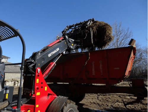 Valet de ferme conçu pour l’agriculture, paysage et BTP et pour des équipements lourds devant tels que godet, malaxeur à béton, pailleuse, dérouleuse, godet nettoyeur hacheur de betteraves.