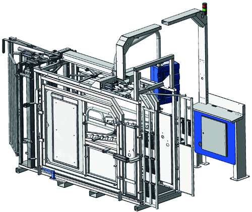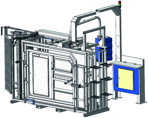 - Cage de contentions assistées pneumatiques à parois largeur variable et fond anti dérapant.