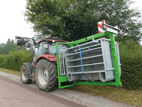 Possibilité de composer son parc en fonction des besoins grâce à au support incorporé avec une capacité de transport et de stockage de 30 barrières de contention de 2 m ou 2,40 m et possibilité de compléter avec un passage d’homme. Deux portes tôlées d’ouverture galvanisées, châssis mobile attelage trois points, appareil livré de série avec signalisation et éclairage. Choix d’options pour chaque utilisation. Longueur 2,5 m et largeur 2 m.