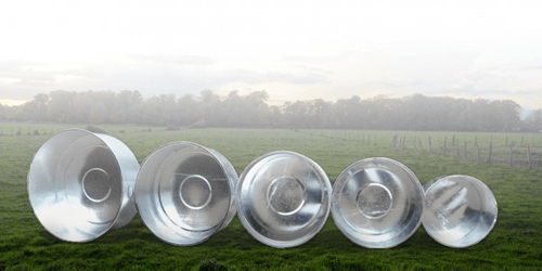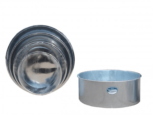 Bacs à eau en acier galvanisé de 260 à 1 250 L. De 0,50 à 0,60 m de haut avec un modèle spécial pour chevaux de 0,85 m de haut. Fabriqués avec une tôle de 1er choix d'une épaisseur de 2 mm avec un fond nervuré et équipés d'un bouchon de vidange.