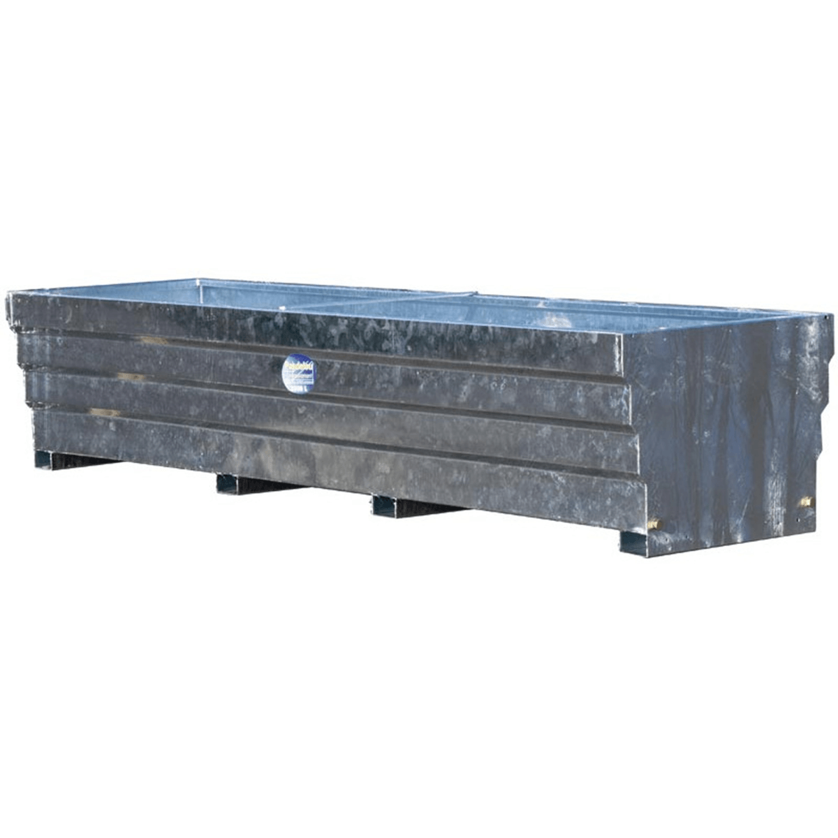 Une grande gamme de bacs à eau/herbage en acier galvanisé pour bovins, ovins, équins. De formes cylindriques ou rectangulaires et dont la contenance va de 420 L à 3 700 L. Grande solidité avec une finition sécurisante pour les animaux.