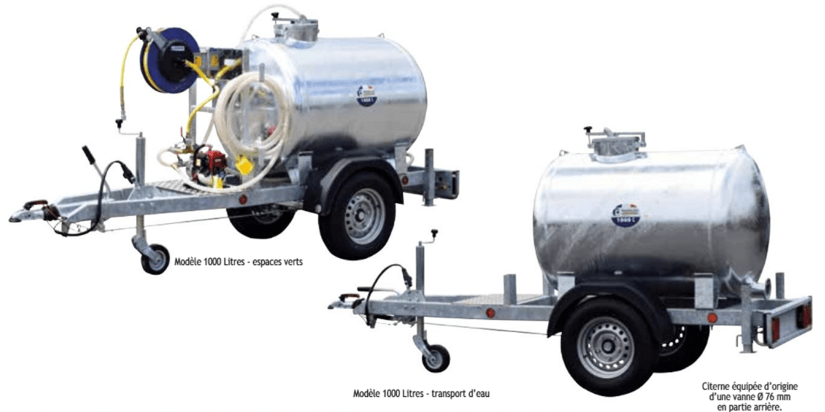 Citerne espaces verts 1 000 L - 1 essieu PTAC 1 500 KG