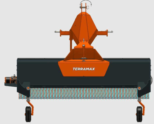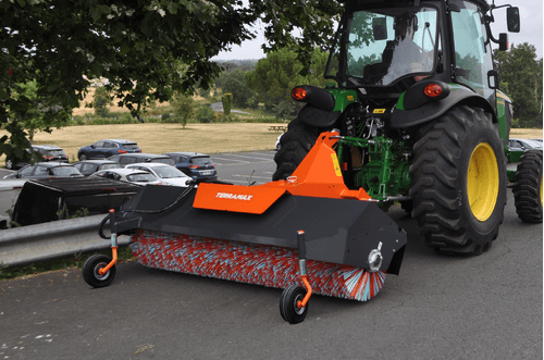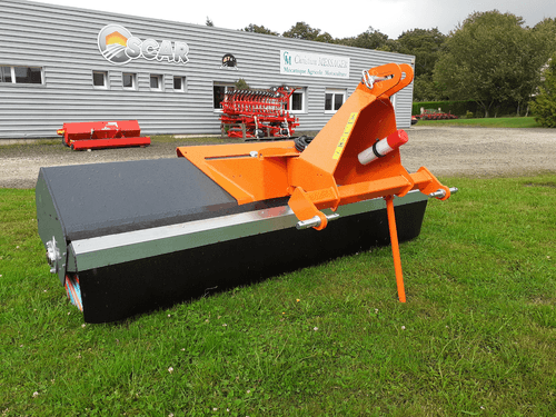Balai mixte Polyester/Polypropylène Ø 550 mm, largeur 2,10 m. Entraînement hydraulique. Orientation et déport mécanique 8 positions (D et G). 2 roues de terrage 400x80 pivotantes à 360° et réglables en hauteur. Béquille de dépose. Moteur hydraulique protégé. Attelage trois point arrière.