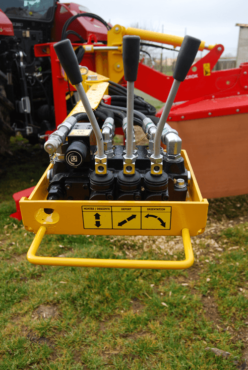 Télescope, relevage et orientation hydrauliques avec commande indépendante et centralisée sur bras pliant. Grande amplitude de travail.