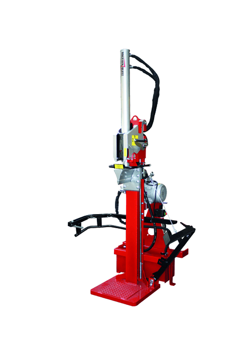 Commande bi-manuelle avec griffe de maintien pour plus de sécurité, lève buche, butée de réglage de hauteur de coupe, glissières en laiton, couteau incliné de forme éclateur pour fendre avec moins d’effort, etc…
