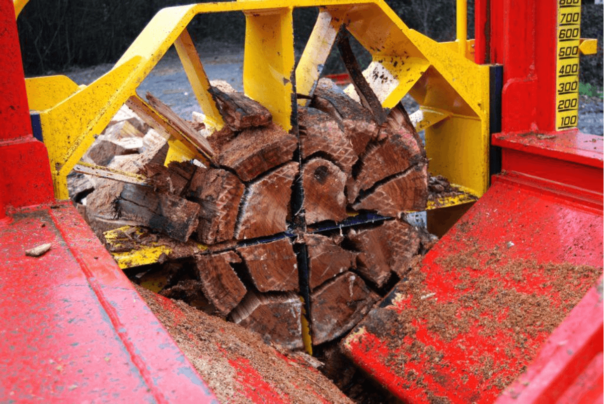 La fendeuse de bûches hydraulique horizontale F80 d’une puissance de 80 tonnes se particularise par sa méthode de fendage par grille qui lui permet de la rendre unique. Elle peut recevoir des billons jusqu'à 80 Ø l'intérieur de son chenal de fendage. Les bûches sont poussées vers la grille par une force de 80 T. Cette grille interchangeable peu diviser en 16, 24 ou 28 éclats. Possibilité de rassembler 2 morceaux de bois de 50 cm ou de fendre 1 m de bois (longueur maximum des bois 1,38 m). Nombreuses configurations sont possibles et de choix d’options pour chaque utilisation. Elle est montée sur un essieu de déplacement ce qui permet une grande mobilité. En réduisant le diamètre des grumes elle permet une production intensive du bois de chauffage. Commandes électro-hydrauliques par radiocommande ou depuis la fendeuse.