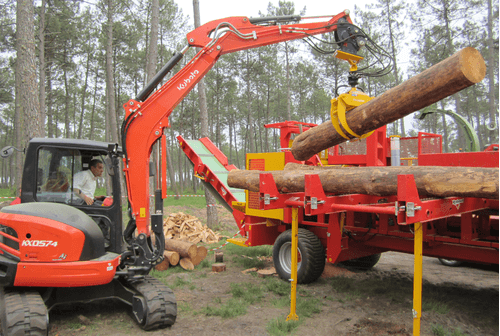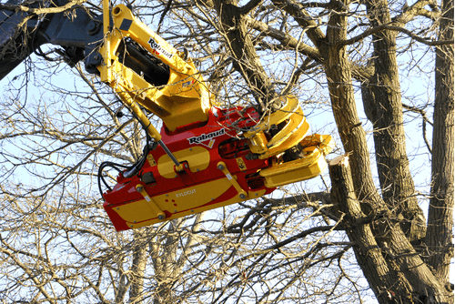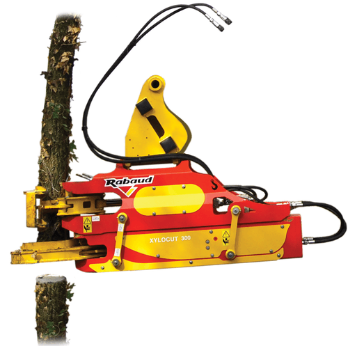 Sur pelle hydraulique de 13 à 25 tonnes selon modèle, avec un diamètre de coupe de 310 mm et 400 mm. Puissance de coupe jusqu'à 60 tonnes. Sécurité avec les pinces supérieures hautes qui assure un maintien de l'arbre après la coupe et lors du transport du bois.
