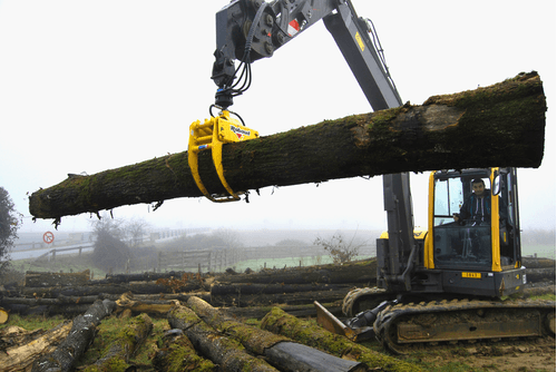 Il est idéal pour la manipulation de bois de gros diamètre avec possibilité de prendre plusieurs bois. Adaptable sur chargeur avant, télescopique, grue forestière, mini-pelle.
