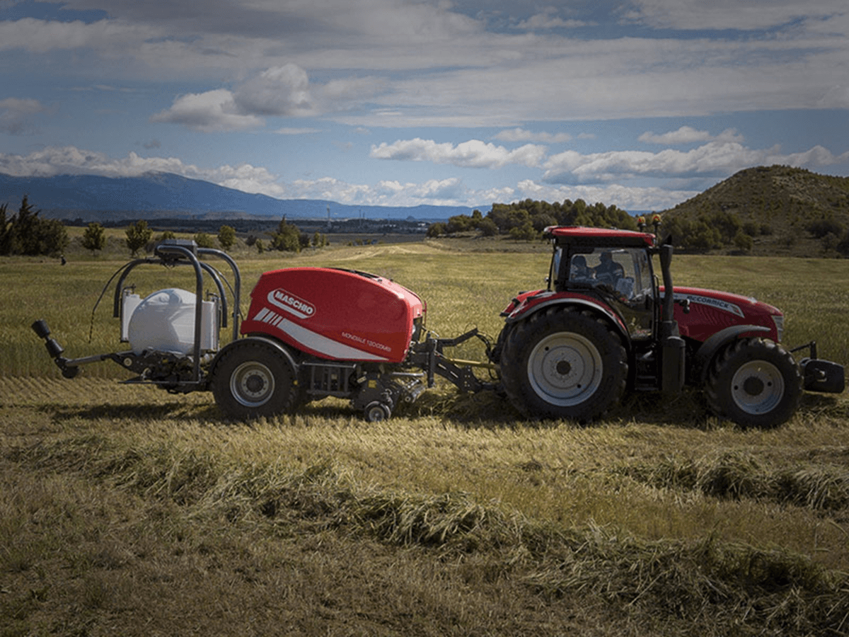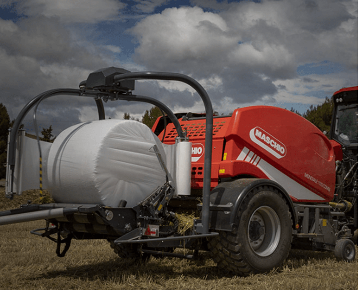 La presse MONDIALE 120 COMBI propose un pressage de grande qualité et un enrubannage fiable. Cette presse à chambre fixe et 19 rouleaux avec ameneur rotatif une totalement automatique dans toutes ses fonctions avec possibilité de gérer à la fois les fonctions de la presse à balles rondes et de l'enrubanneuse. Ces opérations sont régies depuis la cabine du tracteur via ISOBUS. Table d’enrubannage avec double bras satellite