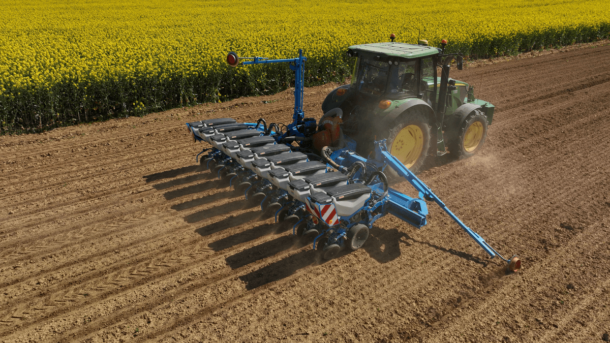 Semoir monograines pneumatique à enterrage à disques.