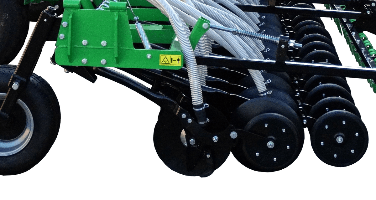 Les modèles SNC en simple trémie 6000L et en double trémie 7500L sont des semoirs pneumatiques avec sécurité ressort (bagues en téflon), et peuvent se monter avec différent train de semis (TNR-TND-TDL-TDR et TDC).