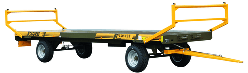 Une gamme de plateaux à paille portés 4 roues Saturne PE et BR avec une charge utile de 12 T à 12,7 T, timon articulé avec ressort de rappel, échelons réglables galvanisés hauteur 0,80m, augmentant la longueur des planchers de 1m. Fond tôlé sur traverses 50x100 mm, largeur 2,5 m. 1 caisson à sangles, gyrophare LED, 3 modèles à freinage hydraulique et 3 modèles à freinage pneumatique. Choix d’équipements en option.