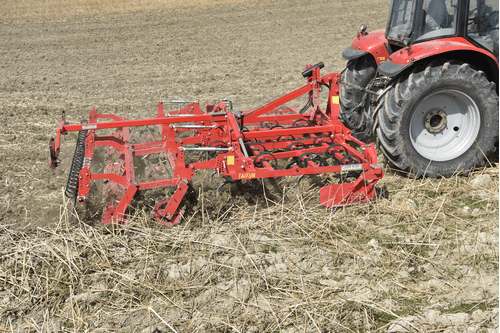 HURRICANE, spécialiste du déchaumage de précision démontre aussi ses capacités de travail en profondeur et pour préparer un lit de semence. Il peut être équipé de divers accessoires socs, lames niveleuses, rouleaux émiétteurs selon l'utilisation.