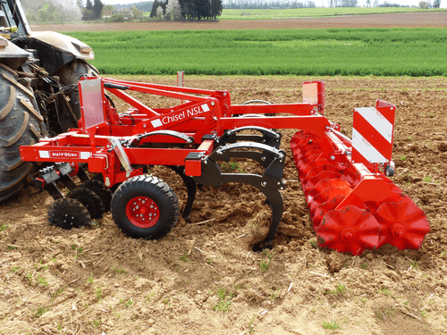 2 - Le déchaumeur à dents porté CHISEL NSL avec châssis bipoutre ou tripoutre 100 x 100 mm avec 2 ou 3 rangées de dents non-stop à lames avec pointe type charrue réversible, dégagement sous châssis 830 mm.
