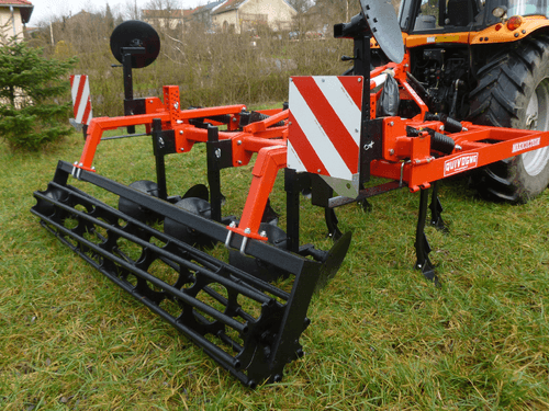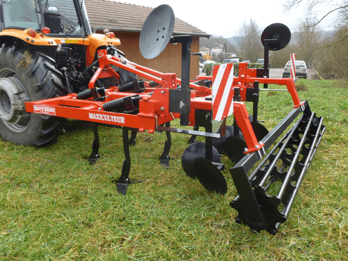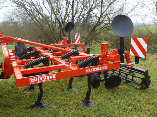 Le déchaumeur à dents porté MAXICULTEUR déchaumeur à dents portés équipé de 2 rangées de dents droites 60 x 25 mm à sécurité boulon, soc réversible avec ailettes largeur 480 mm et un dégagement sous bâti de 850 mm. Châssis bipoutre carré 100 x 100 mm.
