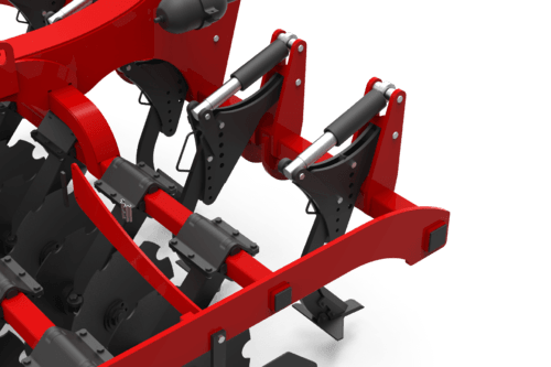 Les dents sont sur deux rangées sont montées sur un parallélogramme avec un réglage hydraulique. Sécurité boulon ou hydraulique suivant la nature du sol.