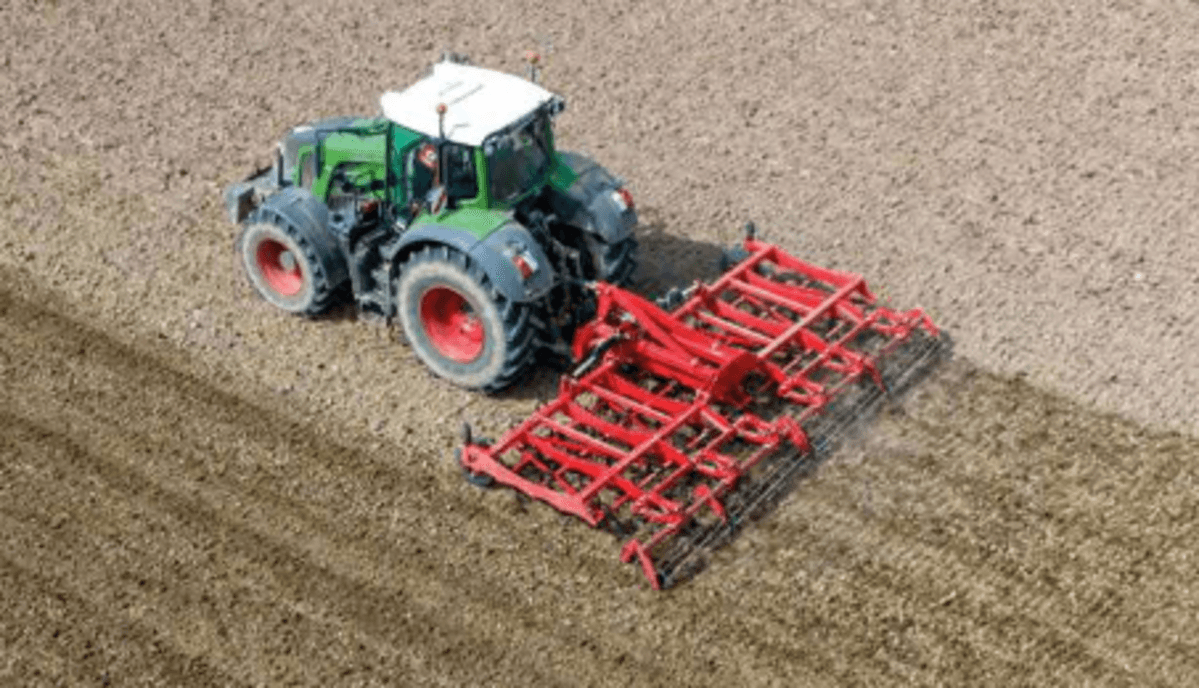 Les préparateurs de lit de semence portés TARVOS et TERREN sont des vibroculteurs légers et repliables équipés de 5 rangées de dents vibrantes. La largeur de travail va de 5,10 m à 8,3 m pour le modèle TARVOS et de 5 m à 7 m pour TERREN dont le dégagement est plus élevé pour un travail profond et pour éviter les bourrages. L’écartement entre dents de 100 mm ainsi que le double rouleau arrière d’un diamètre de 310 mm permettent d'émietter efficacement les mottes. Dégagement sous bati de 440 mm sur TARVOS et 550 mm sur TERREN.