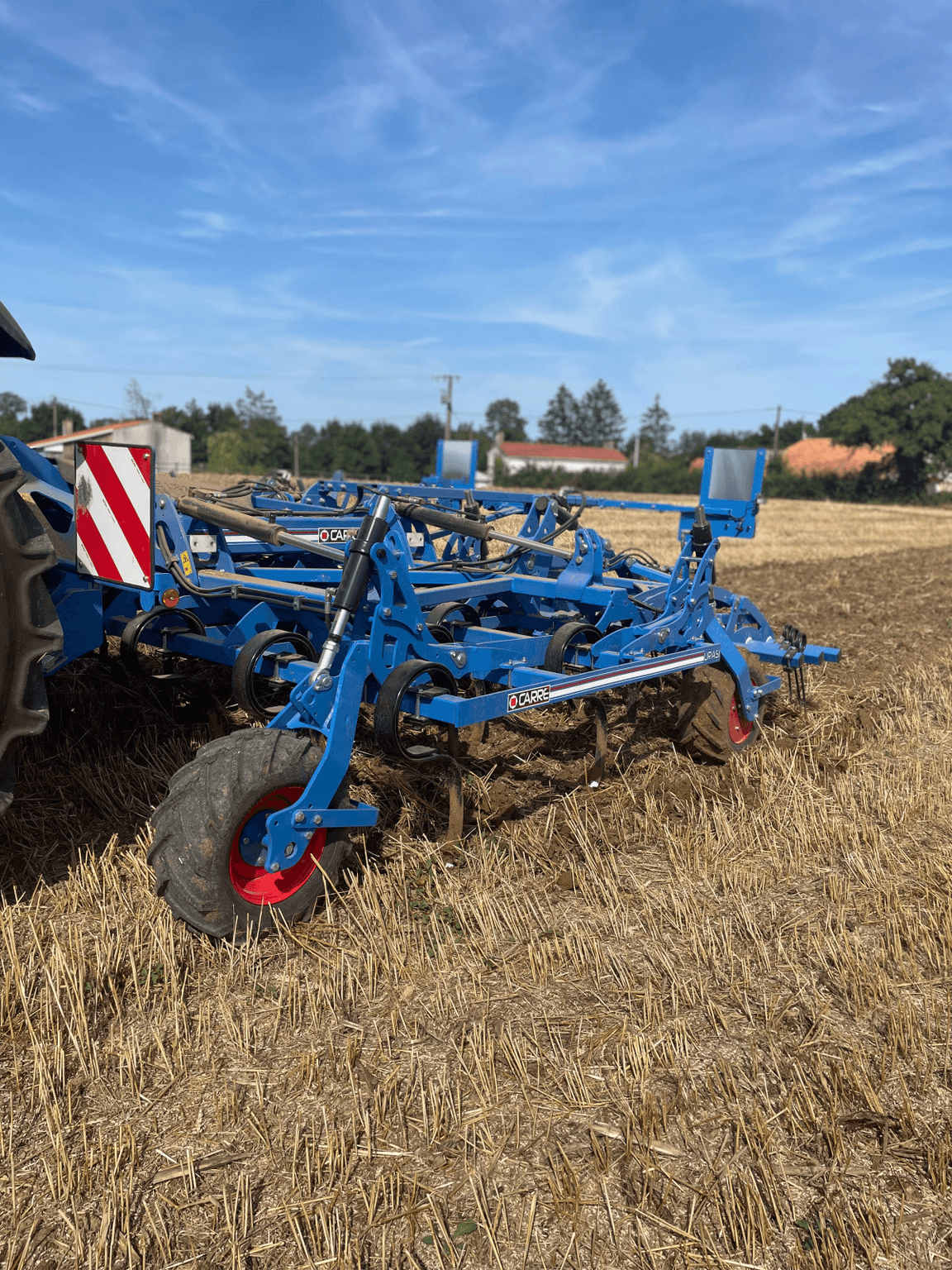 La répartition des dents sur 4 rangées et son dégagement sous châssis important, lui confère un flux de travail inégalable. Il est équipé de dents 80x12 mm avec contre ressort pour garantir une profondeur de travail constante. L’utilisation de soc triangulaire de 250 mm plat laisse un sol parfaitement travaillé à chaque passage du scalpeur. Le réglage indépendant de la hauteur des roues de contrôle avant et arrière permet de garantir une profondeur de travail constante et un suivi optimal du relief. La herse peigne arrière à réglage hydraulique montés sur 3 barres permet de remettre le racinaire des résidus en surface sans risque de reprise. Le tout est facilement contrôlable depuis la cabine grâce à un boîtier, pour un confort et une maîtrise totale de vos opérations. Disponible en version fixe et repliable portée 3 points de 3 à 6m.