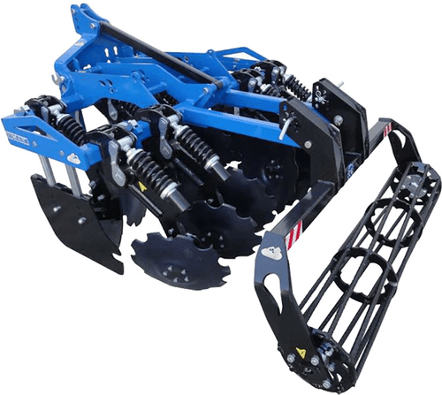 8 disques crénelés, largeur de travail de 1,30 à 1,60m, sécurité à double ressort, rouleau Ø320mm, déflecteurs. Bonne pénétration même sur sol sec. Existe aussi de 12 à 20 disques.