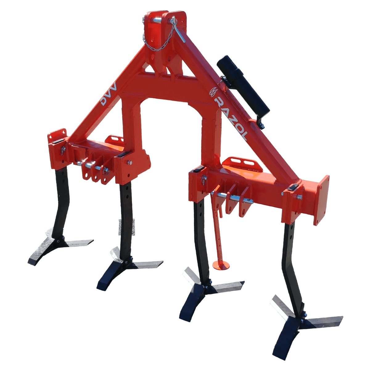 DVV un décompacteur porté attelage porté catégorie, attelage arrière fixe catégorie n°1 et 2 réglable en largeur, 3éme point arrière réglable en hauteur , qui ameubli les sols viticoles en profondeur pour une meilleure infiltration de l’eau et une bonne aération du sol. Avec un châssis monopoutre en acier 120x60x8 mm et un dégagement sous châssis variable de 40 à 60 cm (5 positions) et un passage pour prise de force pour atteler un outils animé, ces dents droites en acier, socs à ailettes et pointes sans sécurité, largeur de travail 36 cm. Largeur de travail de 1,4 m à 2,4 selon les modèles. Choix d’accessoires.