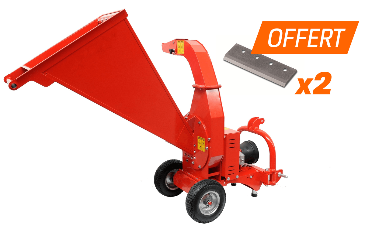 Attelage 3 points. Transmission par courroie, section B avec tendeur à vis. Auto nettoyage avec tamis longitudinaux et système rapide de démontage. Rotor équilibré équipé de 6 couteaux réversibles et 2 lames en acier trempé.