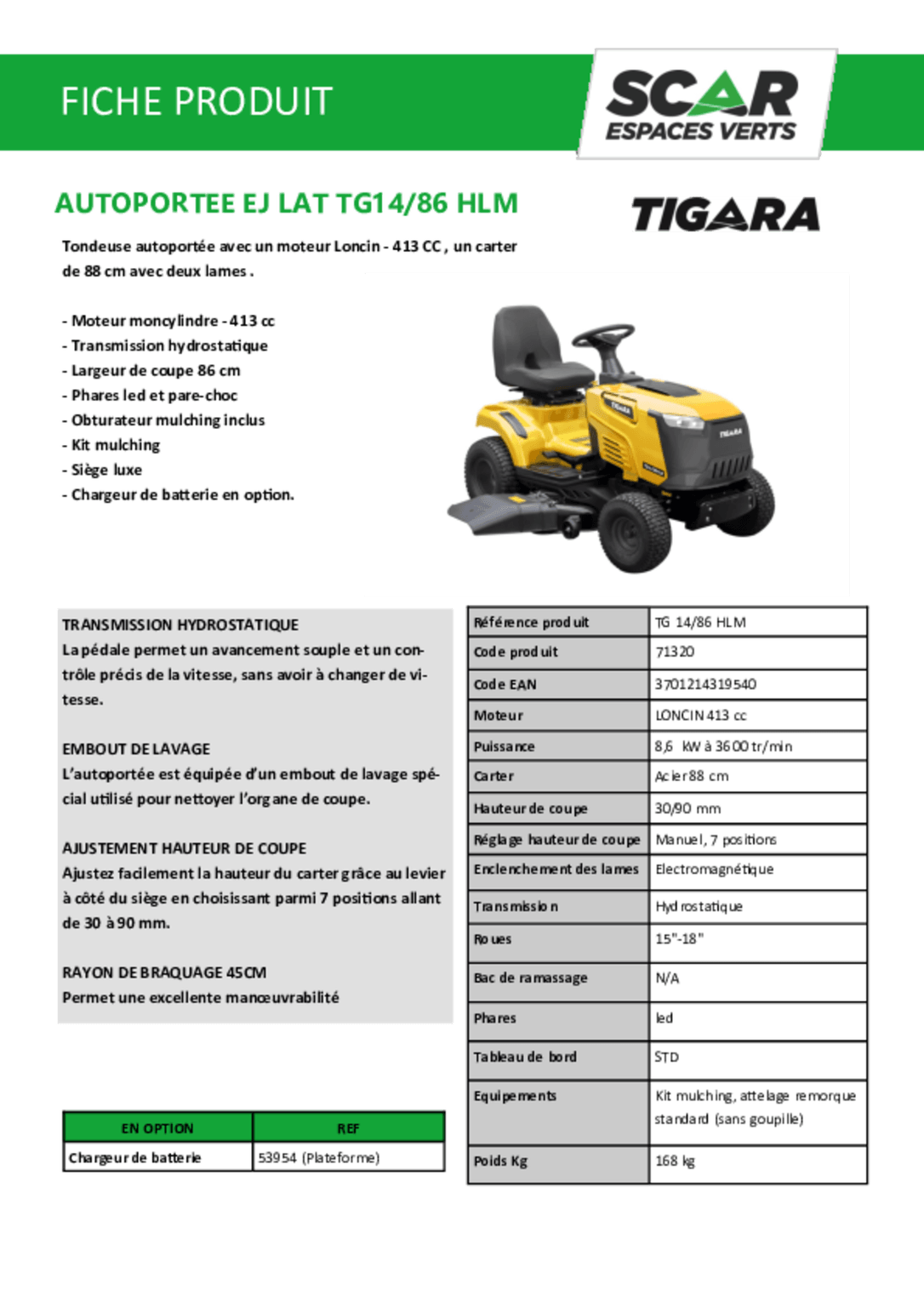 - Tondeuse autoportée à éjection latérale TG 14/86 HLM