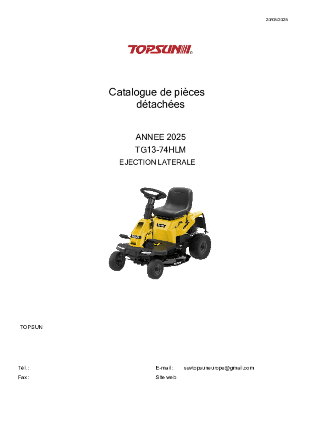 - Tondeuse autoportée RIDER TG 13/74 HLM