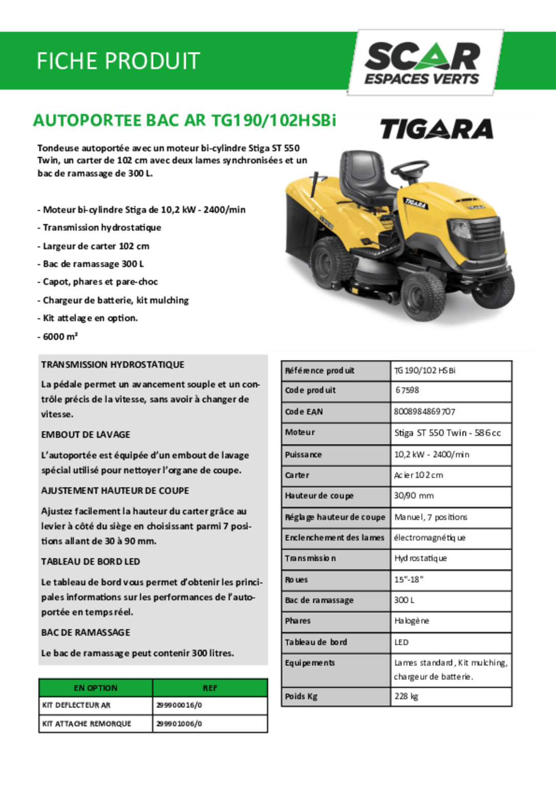 - Tondeuse autoportée à éjection arrière TG 190/102 HSBI