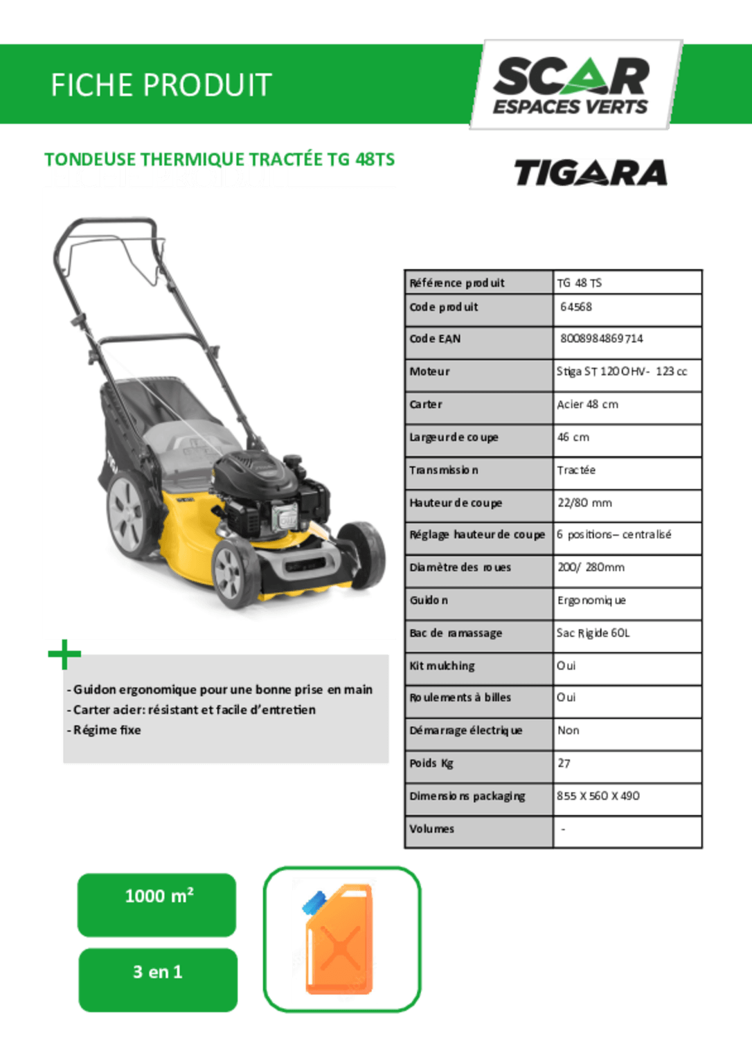 Hauteur de coupe centralisée 6 positions de 22 à 80 mm.