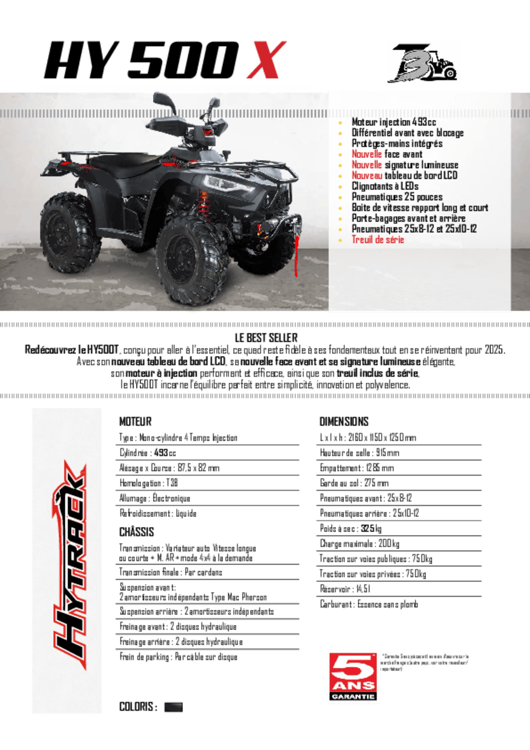Quad. TG503 IT-EPS. Moteur monocylindre 4 temps injection. Cylindrée 493 cc. Puissance fiscale 3 cv Alésage...