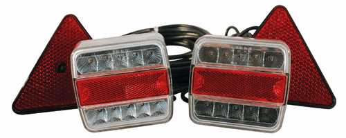Triangle réfléchissant. 12 V. 2,5 m entre les 2 feux. Câble : 7,5 m. Aimant au dos.