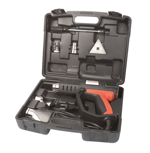 4 buses en acier nickelé adaptables pour travaux spécifiques : 1 buse protège vitres, 1 buse à réflecteur, 1 buse concentrée, 1 buse à pan coupé et 1 grattoir.