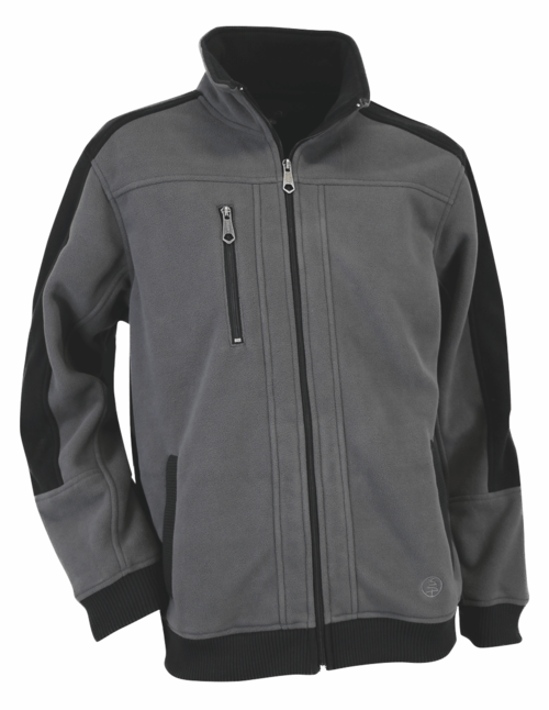 Col cheminée, fermeture à glissière, 1 poche poitrine zippée, 2 poches basses, bords côtes noirs base et poignets.