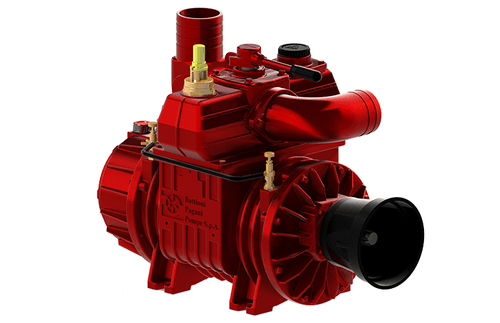 À lubrification automatique. Avec prise directe. RPM : 1 200. Capacité de vide : 11 870 L/m. Puissance à vide max : 21 kW.