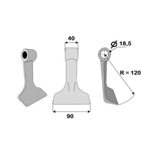 Marteau de broyeur B3 Adaptable. Largeur de travail : 100 mm. Largeur de fixation : 17 mm. Diamètre trou...