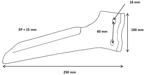 - Dent de herse boulonnée 250 x 15 gauche origine