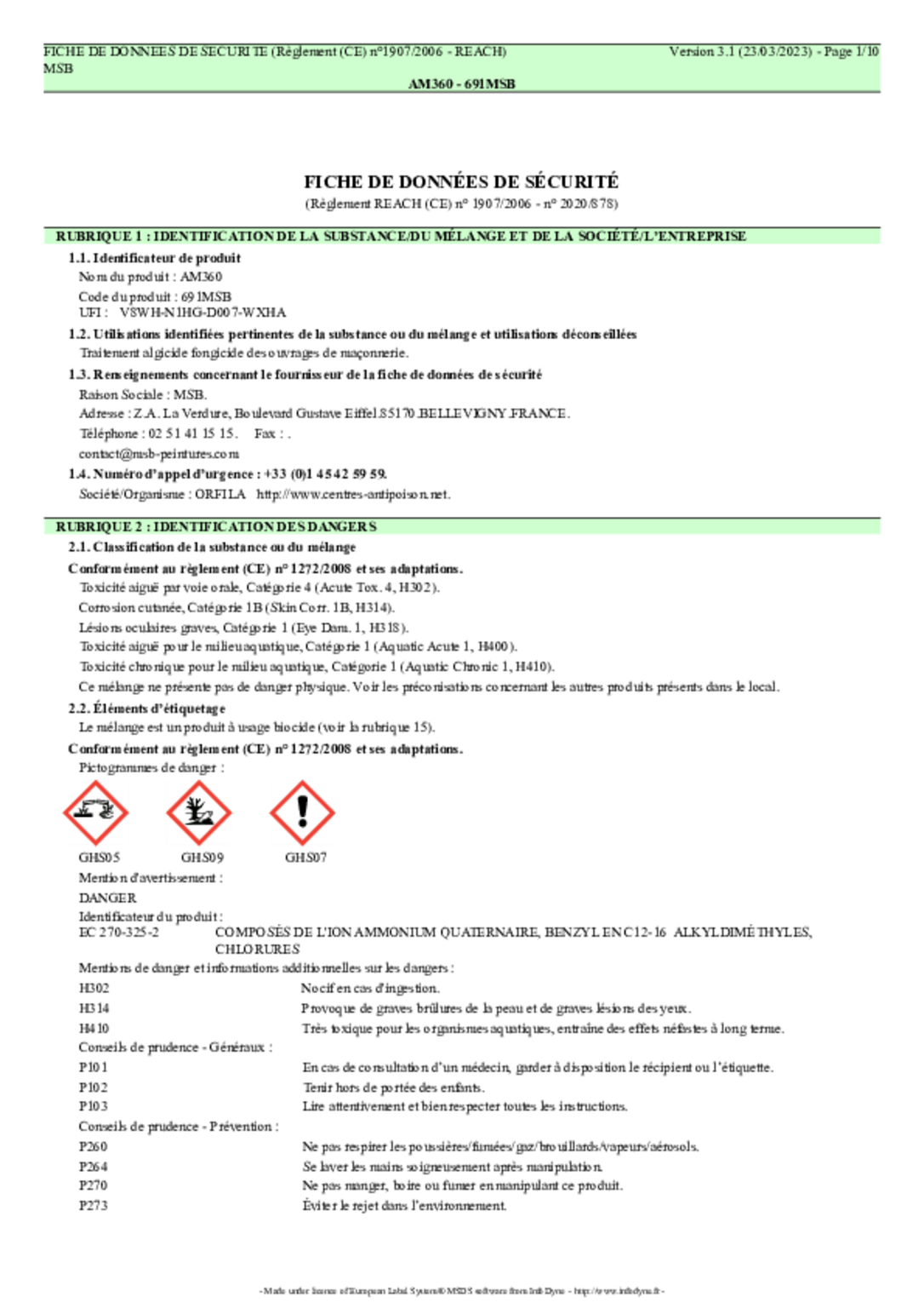 Elimine les micro-organismes et retarde d'autant plus leur réapparition que le support est absorbant.