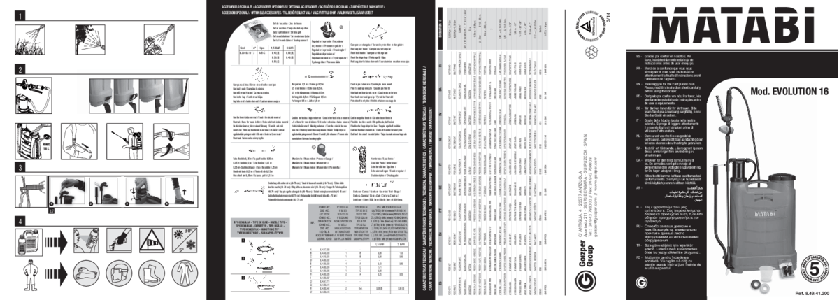 Avec 2 buses insecticides / fongicides disque cône, 1 buse herbicides éventail, 1 buse herbicide miroir, 1 doseur de 100 ml, 2 joints de chambre de pression (1 synthétique, 1 caoutchouc).