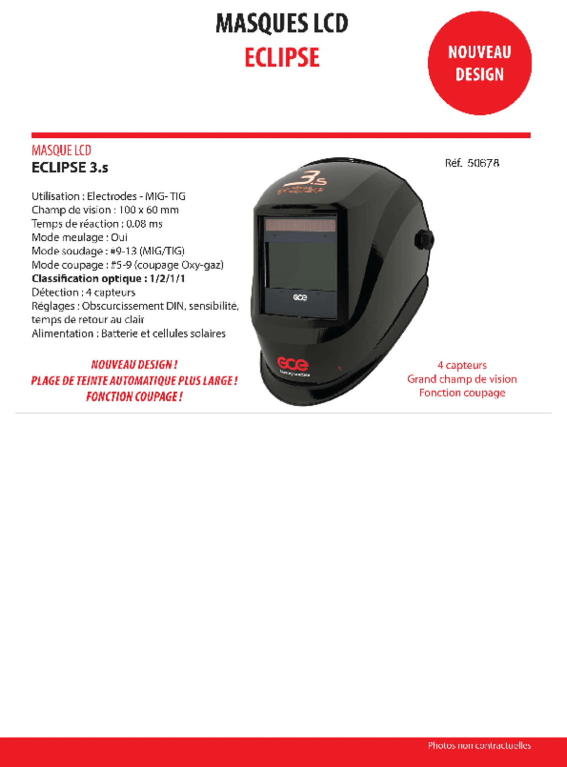 Il assure une protection permanente et garantie au soudeur ainsi que confort et sécurité pendant les opérations de soudage à l'arc.