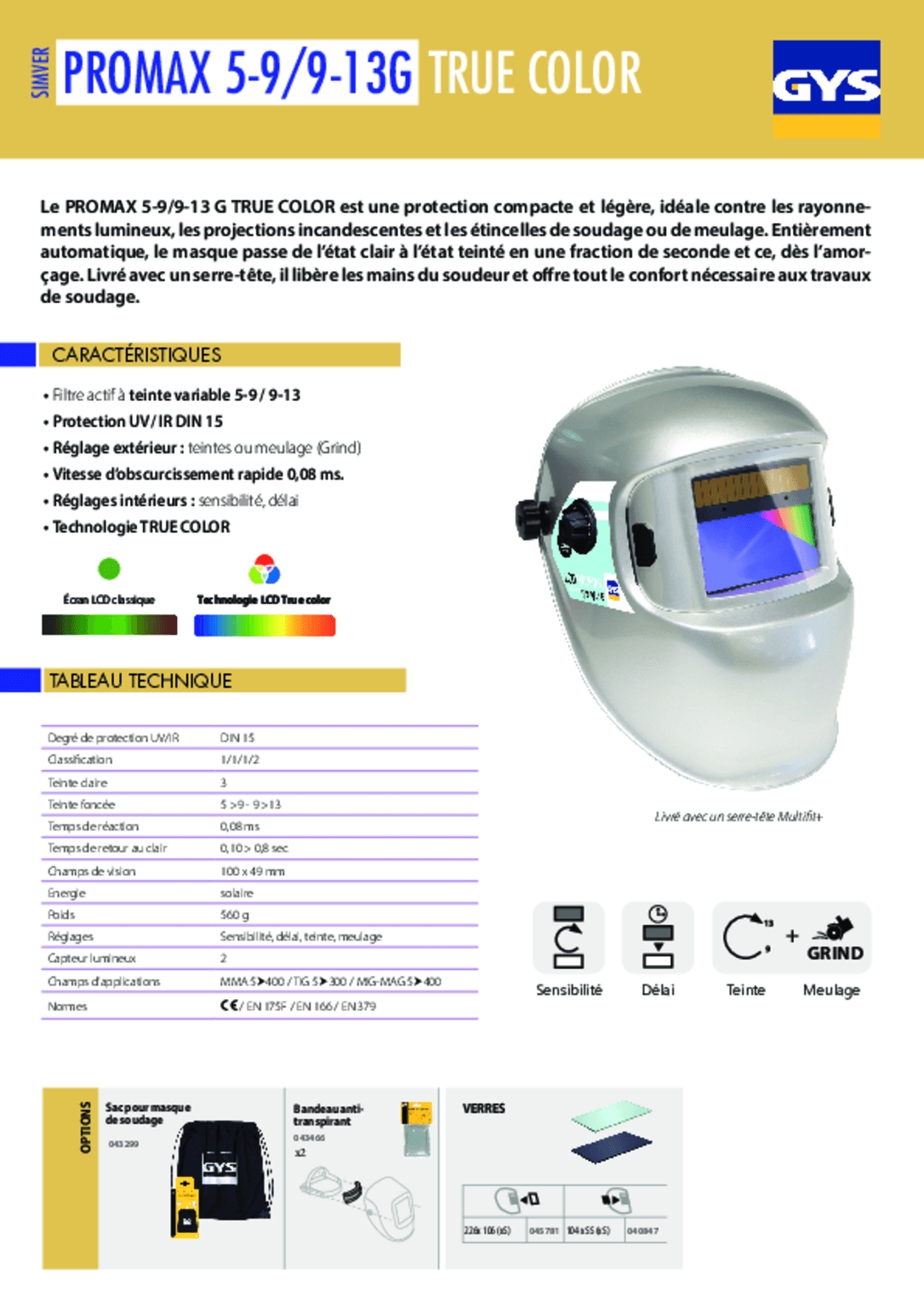 Norme : EN-379 (filtre) et EN-175 (masque).
